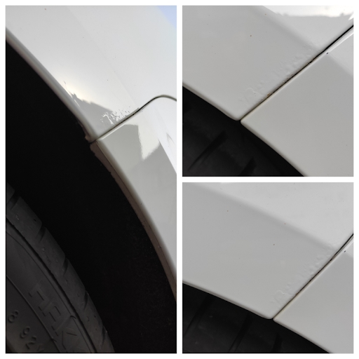 Заднее правое крыло имеет более выраженные повреждения. В месте контакта бампера с крылом лопнула краска, следовательно, тут с ремонтными работами не стоит затягивать, так как пошла более активная стадия разрушения металла коррозией.