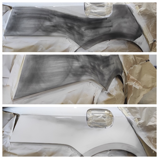 При проведении покрасочных работ маляры покрывают несколькими слоями каждый ремонтируемый элемент автомобиля.