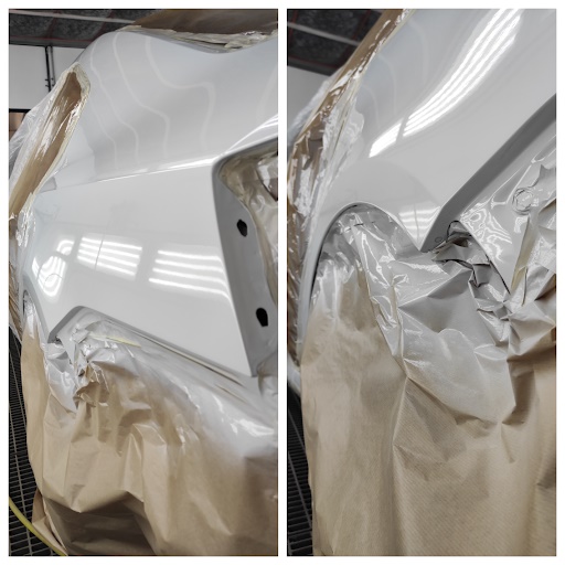 При этом неповрежденная часть кузова надежно защищена нашими сотрудниками от случайного напыла краски на деталь, не запланированную к ремонту.