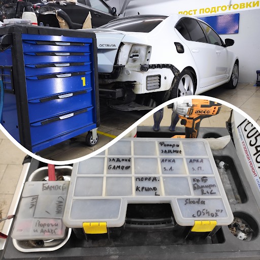 Такая методика гарантирует, что сотрудники кузовного сервиса KUTUZOVV знают расположение снятых деталей автомобиля, даже если разборкой занимался другой мастер.